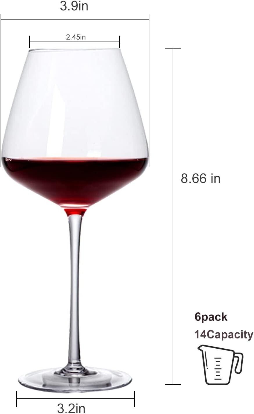 14oz Red Wine Glasses Set of 6,Clear Crystal Burgundy Glasses for Wine Tasting