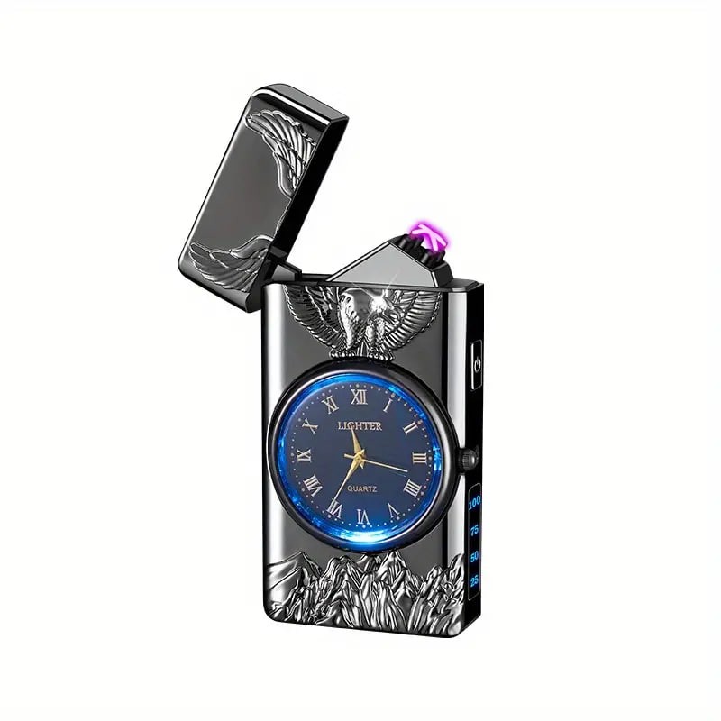 1pc Double Arc Lighter Embossed Eagle Cool Real Dial LED Lighting Charging Igniter