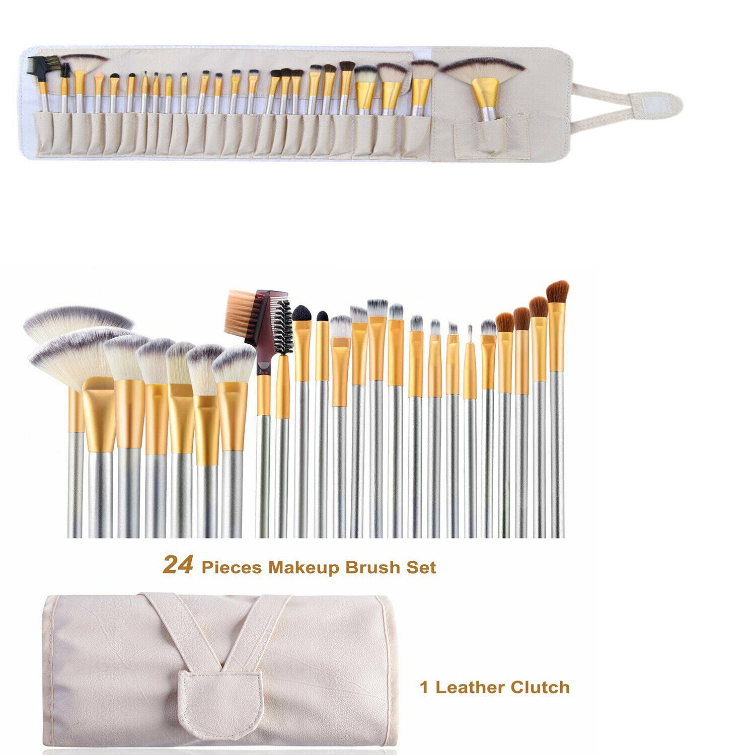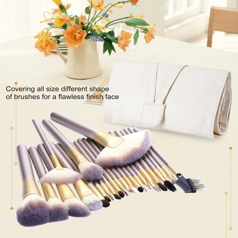 24PCS Professional Make up Brushes Set Cosmetic Tool Kabuki Makeup+Luxury Bag UK