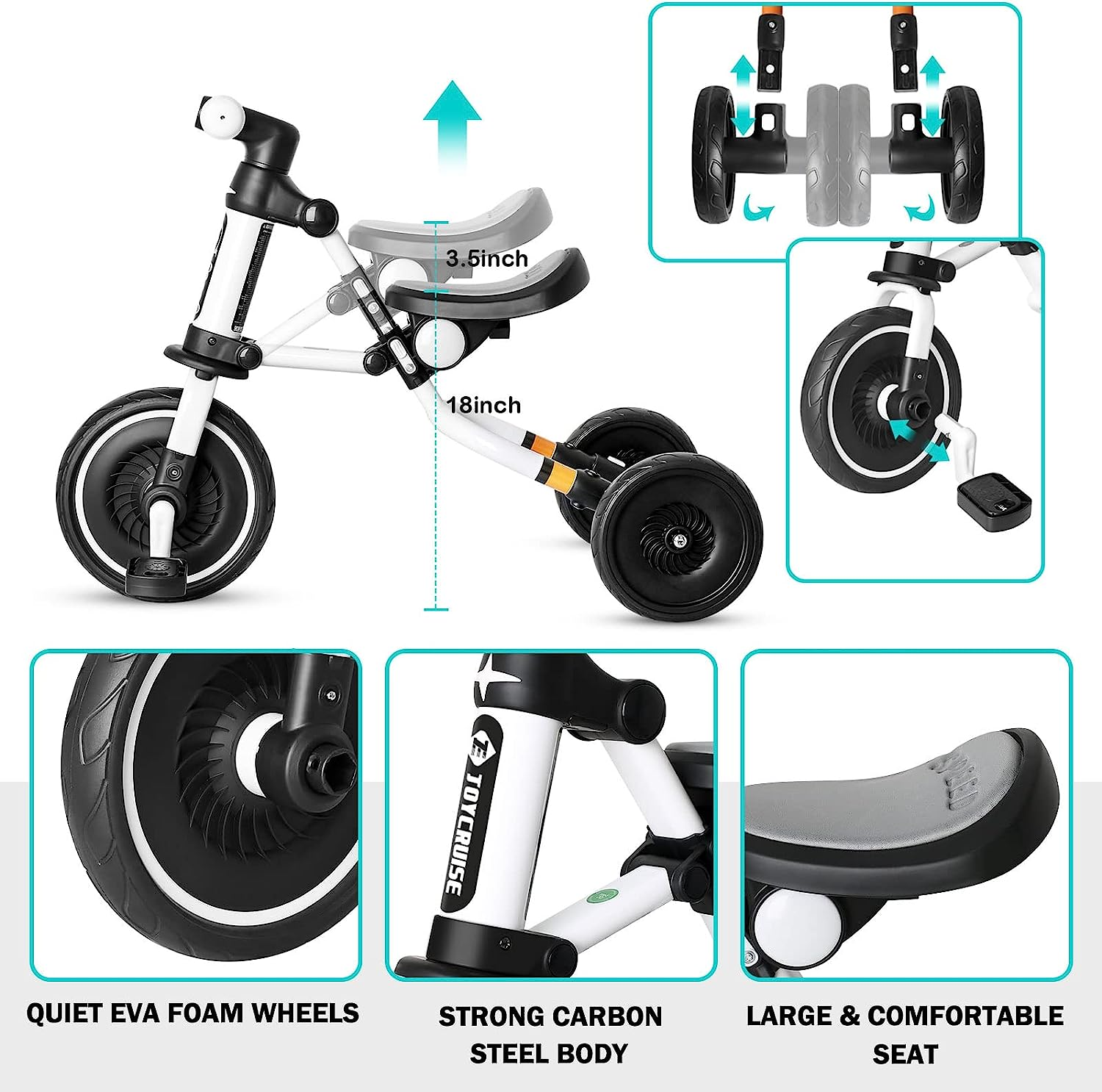 3 in 1 Kids Tricycle for Age 18 Months to 4 Years Old Kids, Toddler Baby Balance