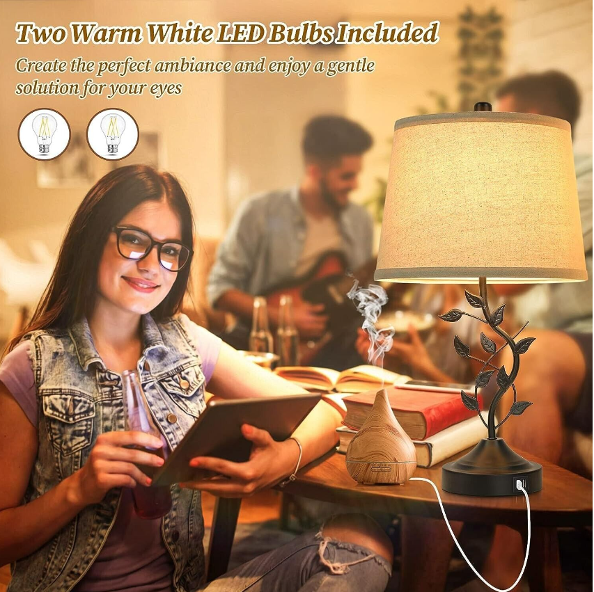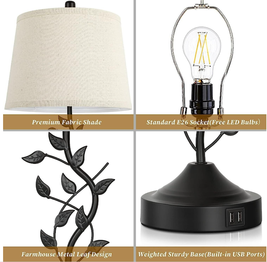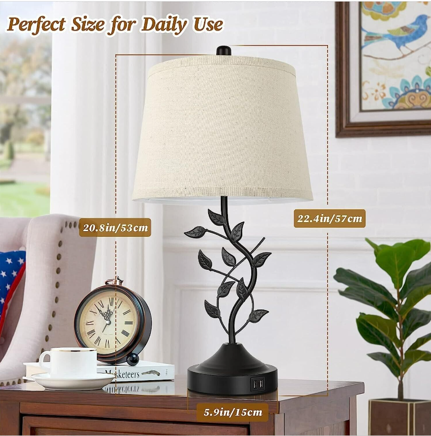 • ❤【Elegant Table Lamps for Home Lighting】This table lamp is aesthetically styled with the metal leafy design which creates an organic element and endows it with an earthy feel. To complement the retro theme, we equipped it with cream fabric shade. Nevertheless, the base and body are in the classic black finish for preserving its modern look. The distinctive design makes it a timeless option for any decoration scheme such as traditional, vintage, modern, rustic etc.