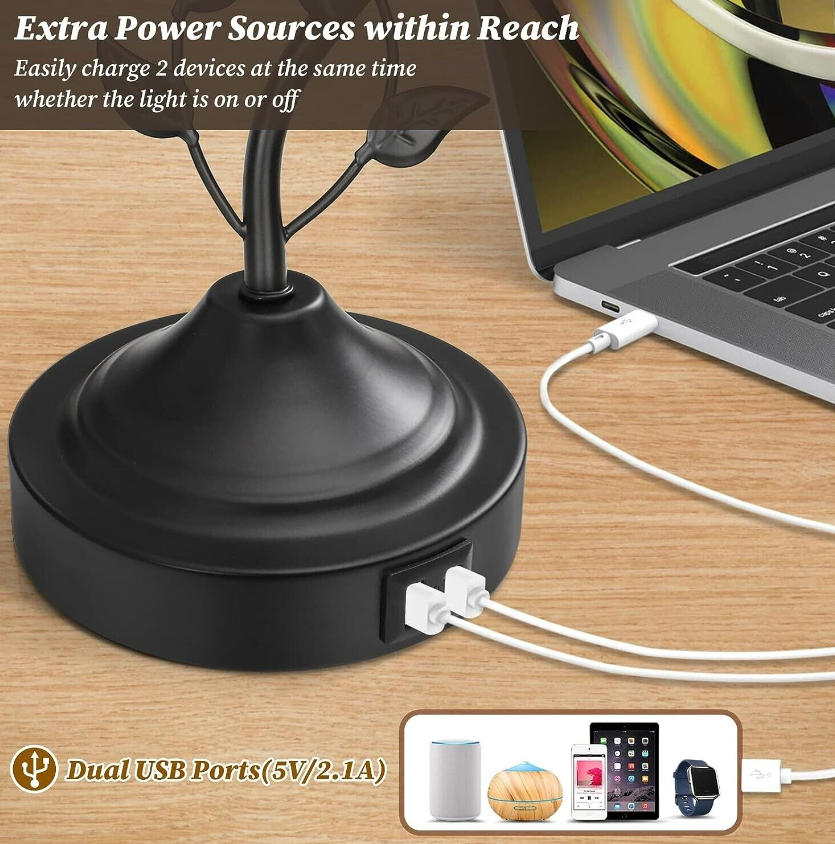• ❤【Bedside Lamps with Dual USB Ports】The two built-in USB fast charging ports(5V/2.1A) on the lamp base are definitely an added bonus. You can easily charge your cellphone, laptop or other electronic devices within arm’s reach using a small cord, thus leaving your side table tidier without all the extension sockets and plugs. The charging function works whether the lamp is on or off, which is practical when you want to power up your cellphone overnight.