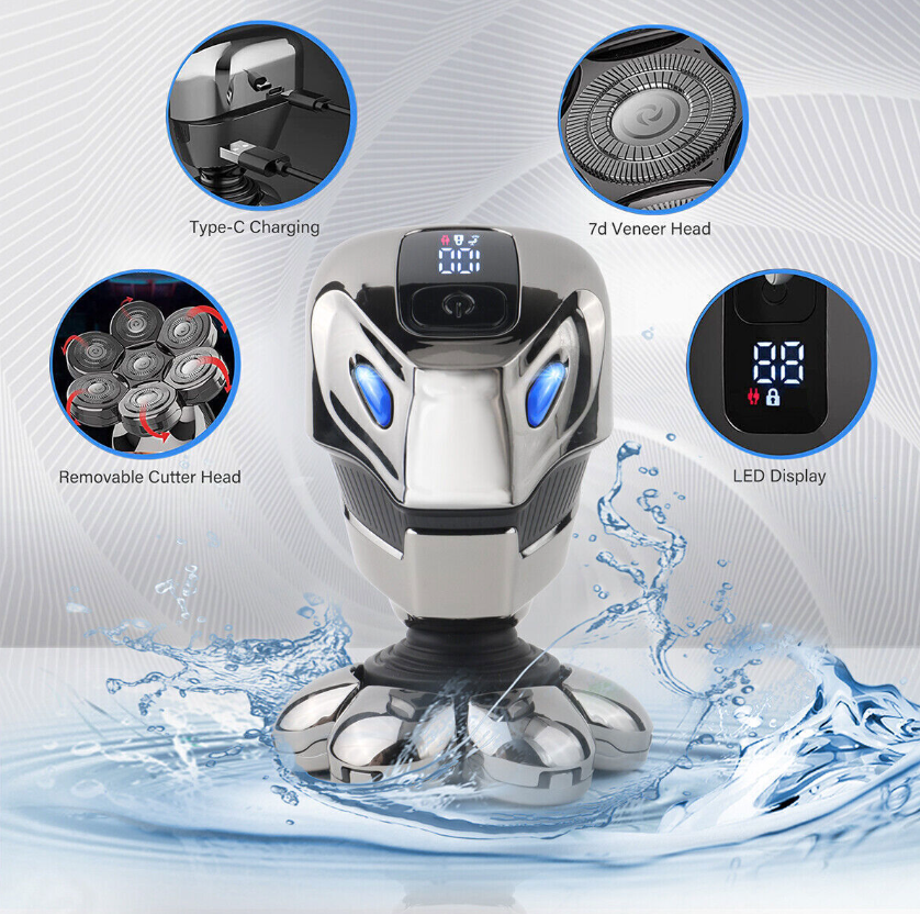 This electric shaver adopts 7D floating shaving head design, which has increased contact area compared to other heads. The center has undergone a broader transformation design. The concave center blade of the razor can increase the curvature of the razor and conform to the skin contour more closely, giving you an efficient and relaxed shaving experience.