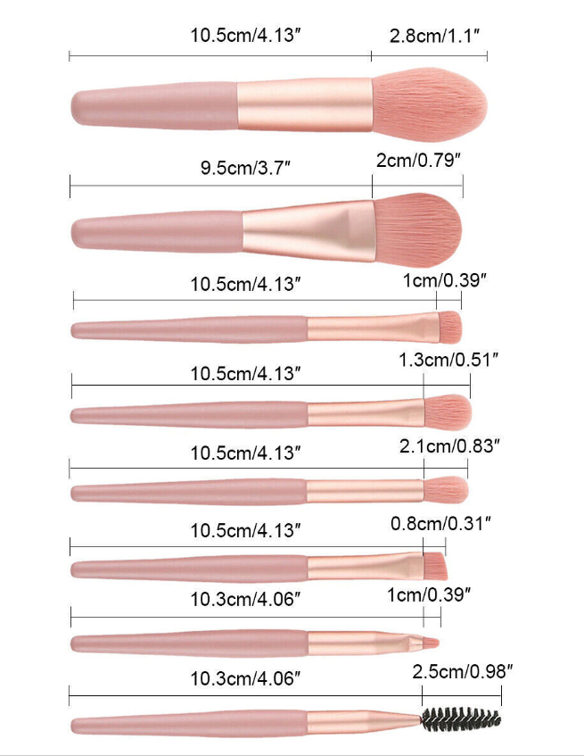 8Pcs Makeup Brush Set With Foundation Blush Eyeshadow Lip Brushes Make Up Bag UK
