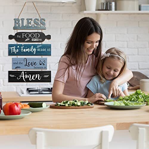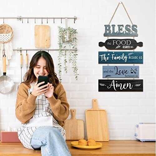 Bless The Food Before Us Sign Farmhouse Kitchen Wall Decor Rustic Dining Room...