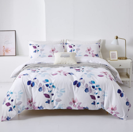 Botanical Leaves Duvet Cover Floral Print Soft Microfiber Cover With 2Pillowcase