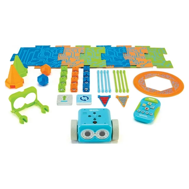 • Botleys 77-piece activity set comes with a remote programmer, detachable robot arms, 4 coding cards, 6 double-sided tiles, 27 obstacle building pieces and a starter guide with coding challenges