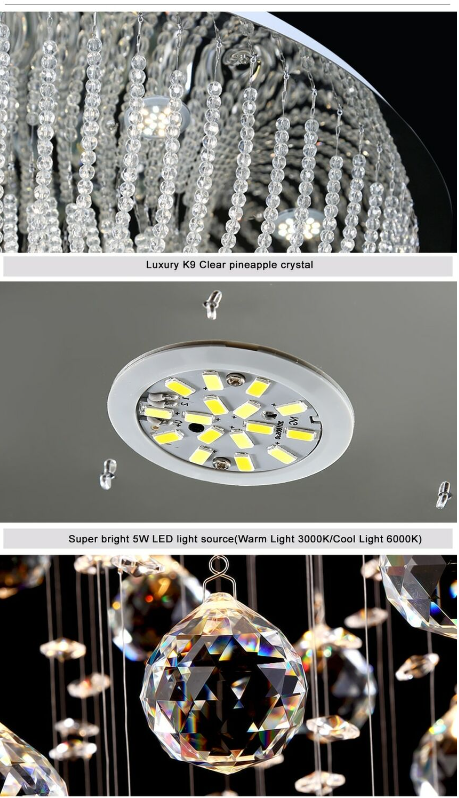 Crystal Chandelier Ceiling Living Room Lobby Lamp Luxury Lighting Fixture Remote