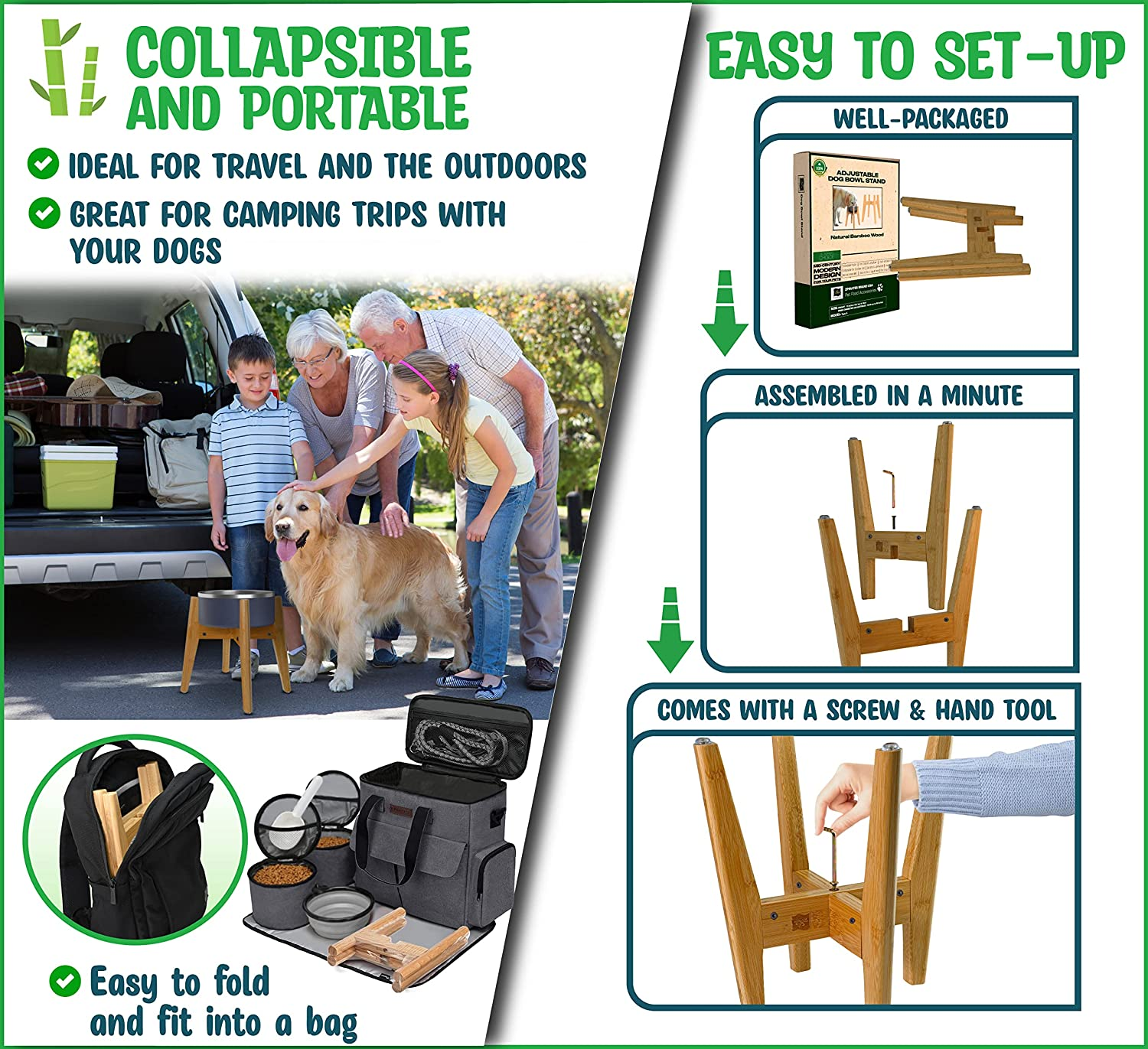 Stainless Steel Foldable Pet Food & Water Bowl Height Adjustable for All Breeds