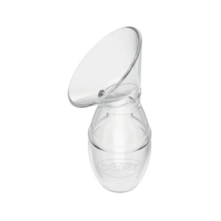 No more wasted breast milk! The Dr. Brown’s™ Silicone One-Piece Breast Pump uses hands-free, gentle suction to collect and save every last drop. Using soft suction to draw out milk, the Silicone One-Piece Breast Pump is your silent companion to catch leaking milk while breastfeeding. Simply place it on your breast, squeeze the base of the pump once to create gentle suction, and let it go to work. It’s hands-free milk collection! The 100% silicone material is soft against your skin and conforms to breasts of every shape and size. An easy-pour design ensures you can transfer your breast milk into the included Dr. Browns’ bottle and store using the secure storage cap, all without losing a drop. The portable and practical design of this milk saver – along with the included drawstring bag – makes it simple to take on the go to pump and relieve engorgement. To use it as a pump, just gently and slowly squeeze and release for more suction power. Feed on the spot with the included Dr. Brown’s™ Options+™ Anti-Colic Bottle. Dishwasher (top rack) and sterilizer safe. BPA Free.