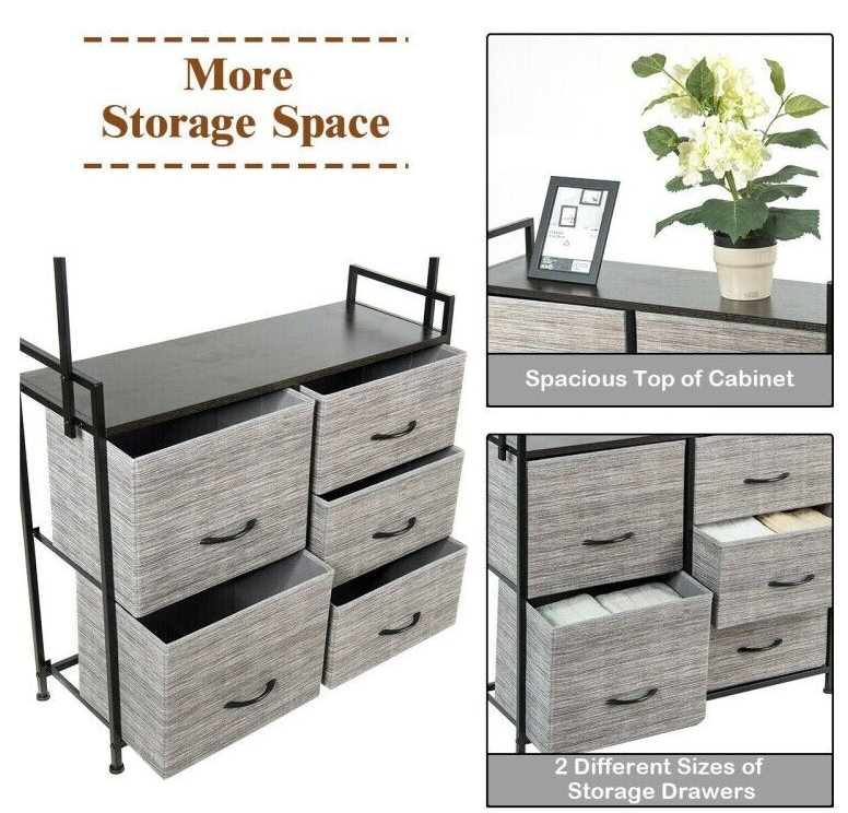 ● Dresser with 5 Fabric Drawers: With 2 kinds of different fabric drawers, you can store underwear, blankets, socks, pajamas wandering, toys and other things in dresser. It not only makes your room tidy but also you can take things conveniently. And every removable drawer features ergonomic handle for easy opening and closing.