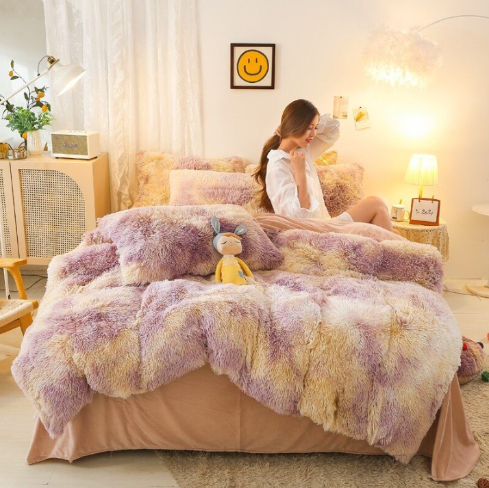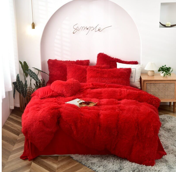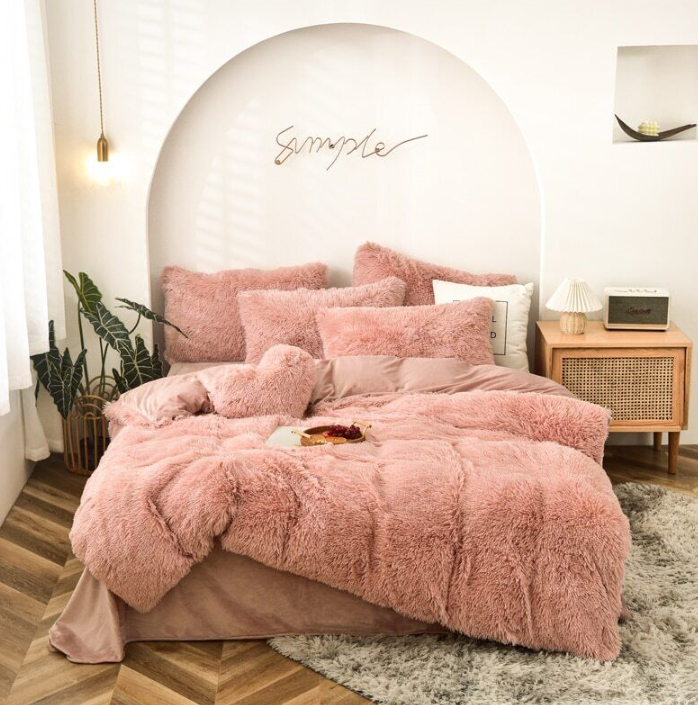 Duvet Cover Set Artificial Long Mink Hair Warm Bedding Set Heart Cushion Pillowc