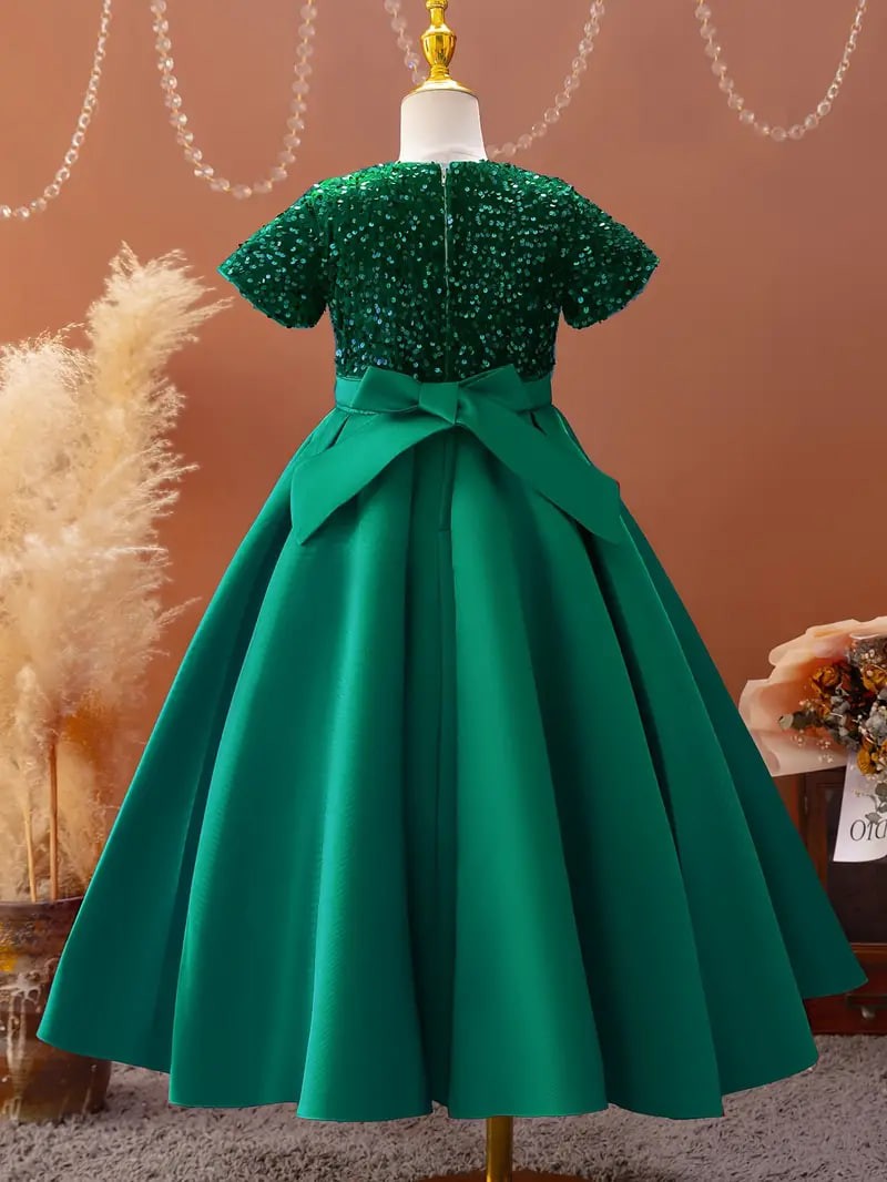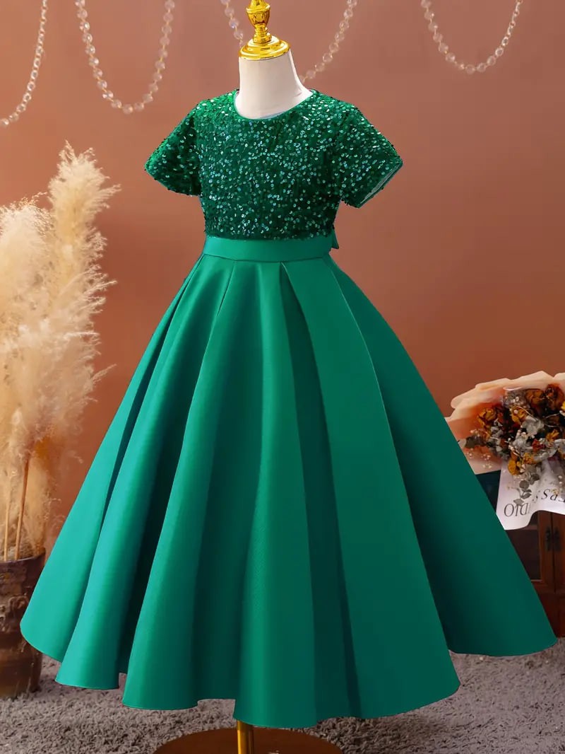 Girls Sequin Sleeveless Dress Crew Neck Dresses For Spring Summer Gift Party Christmas 4-14y