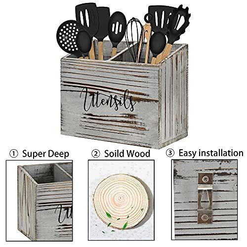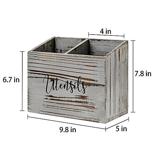 LADESIGGN Wood Utensil Holder for Countertop Farmhouse Kitchen Decor for Flat...