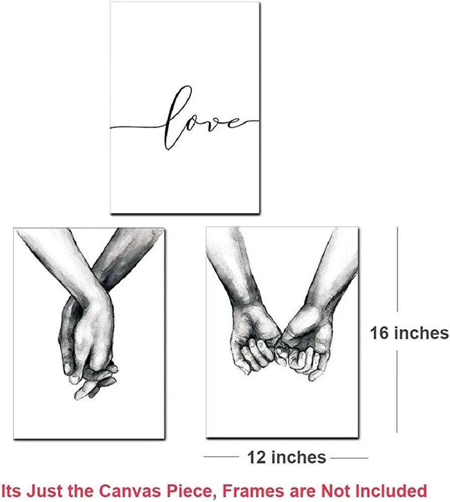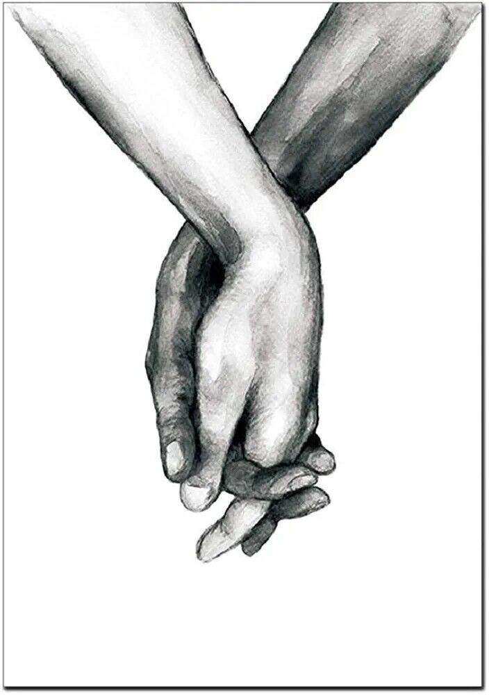 Love and Hand in Hand Wall Art Canvas Print Poster Black and White Sketch Art...