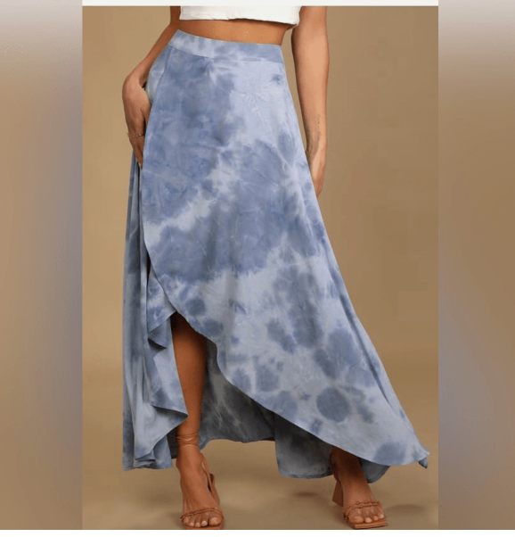 Lulus Above the Clouds Blue Tie-dye High Low Mid Skirt Color: Blue Tye Dye Size: Medium EXCELLENT PREOWNED CONDITION