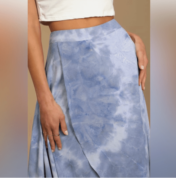 Lulus Exclusive! No need to daydream forever! The Lulus Above the Clouds Blue Tie-Dye High-Low Midi Skirt is here to elevate your style to infinity and beyond with its lightweight and breezy woven composition that shapes a high, banded waist and an overlapping silhouette that ends at a flowy high-low hem. Hidden back zipper/clasp. Unlined. Self: 100% Polyester. Hand Wash Cold. Imported.