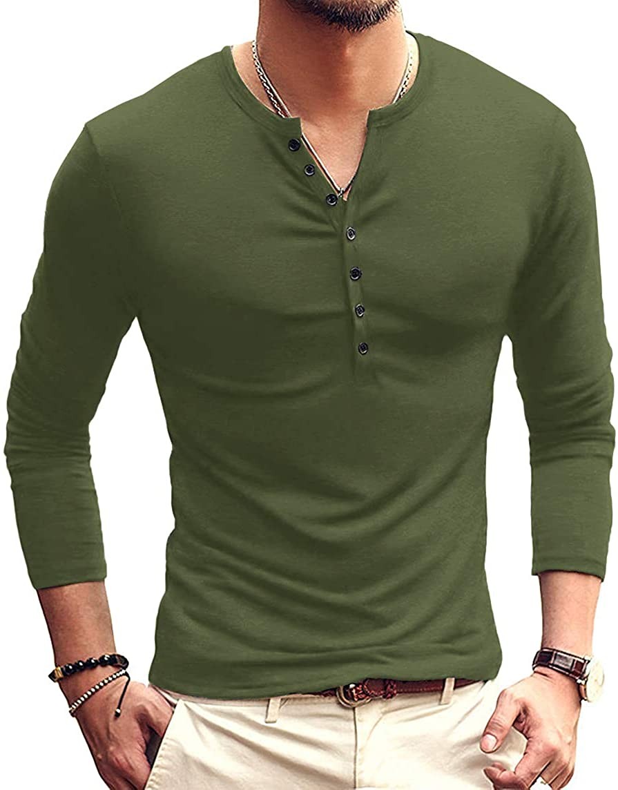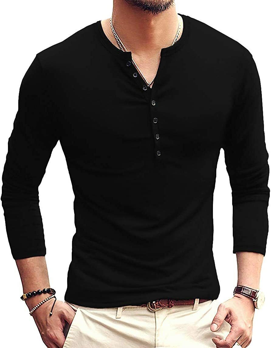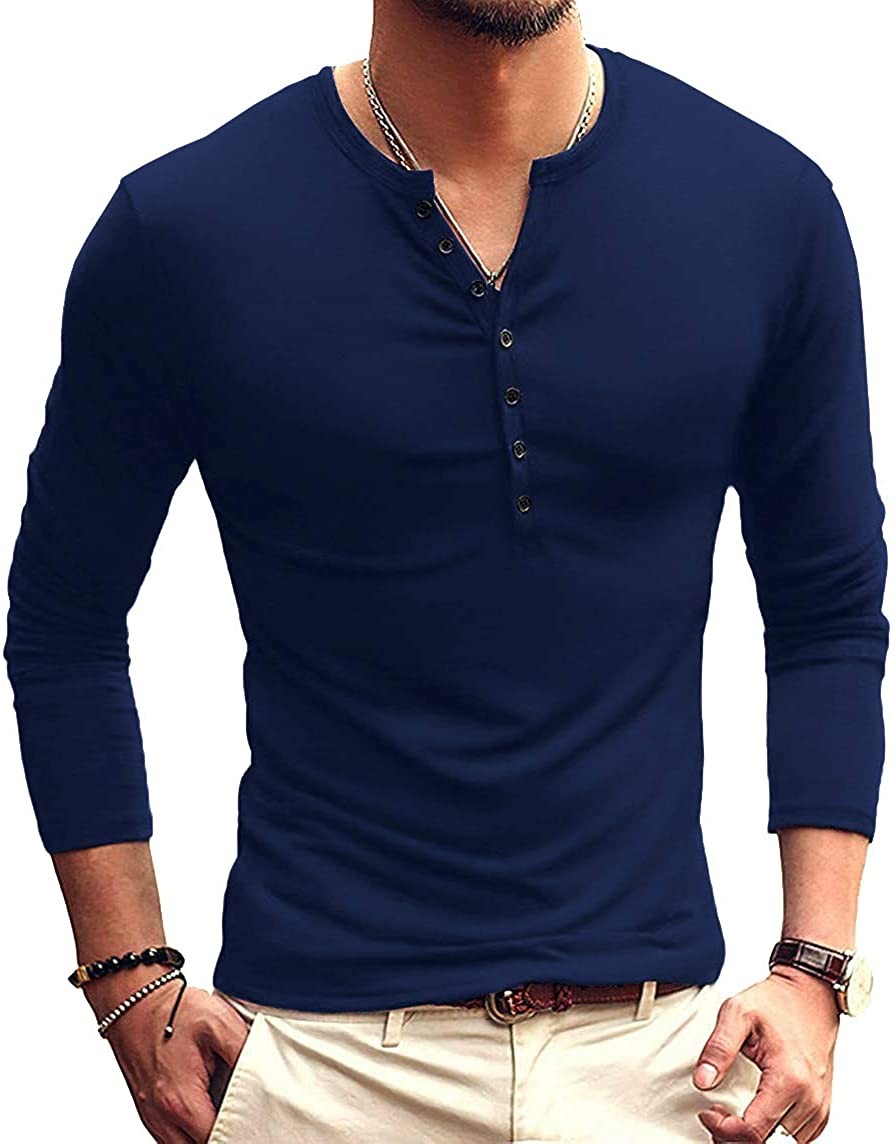 Mens Casual Slim Fit Basic Henley Long Sleeve Fashion T-Shirt