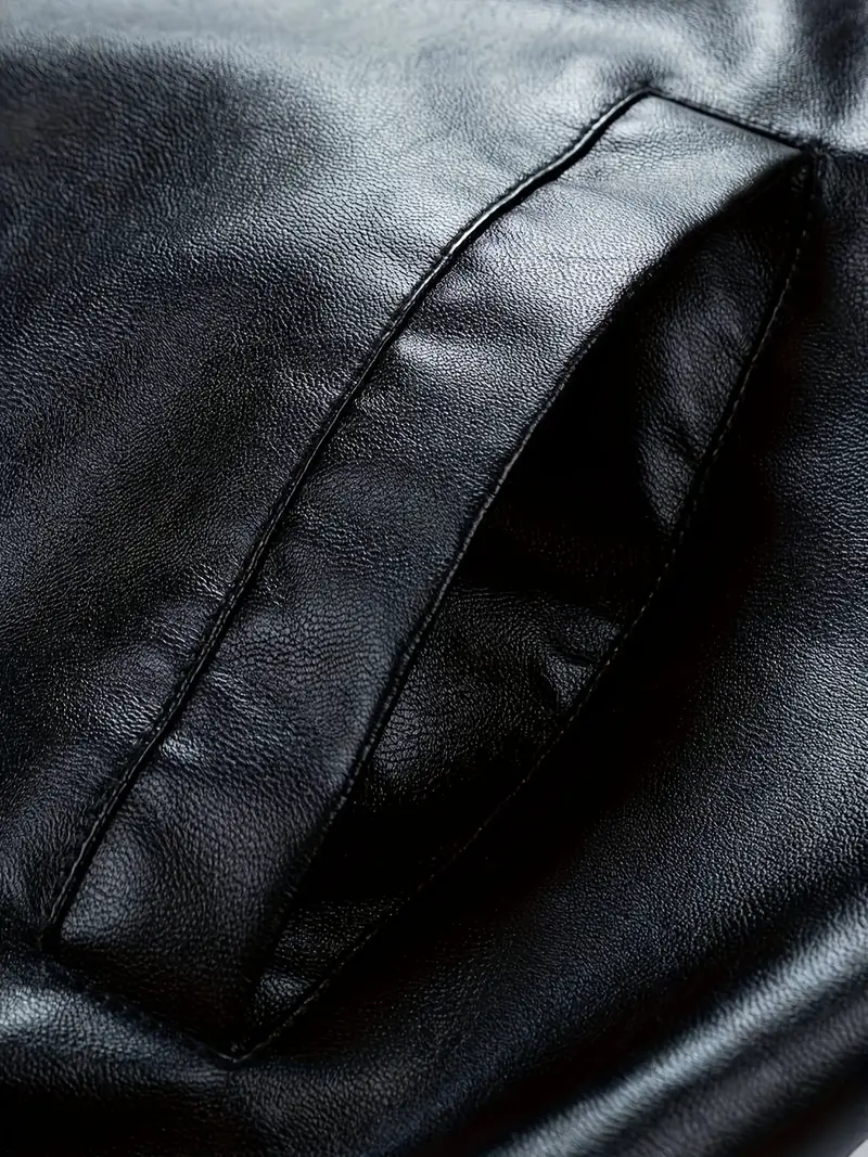 Men's Stylish Vintage Style Faux Leather Jacket With Pockets, Casual Breathable Lapel Zip Up Long Sleeve Jacket For Outdoor Activities
