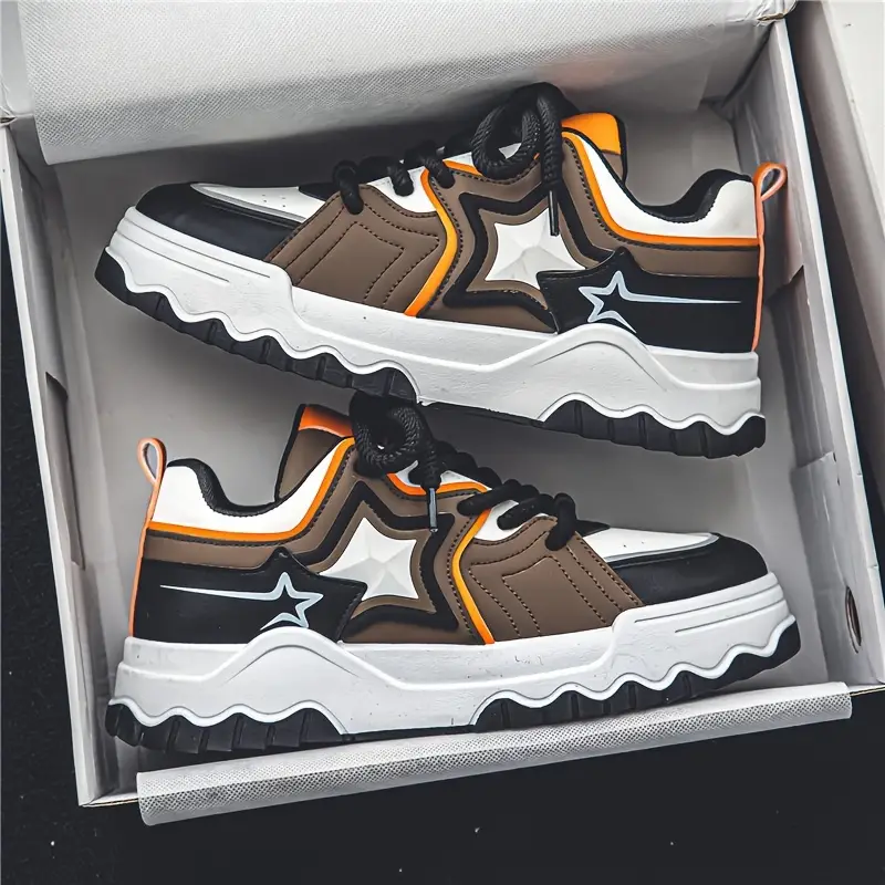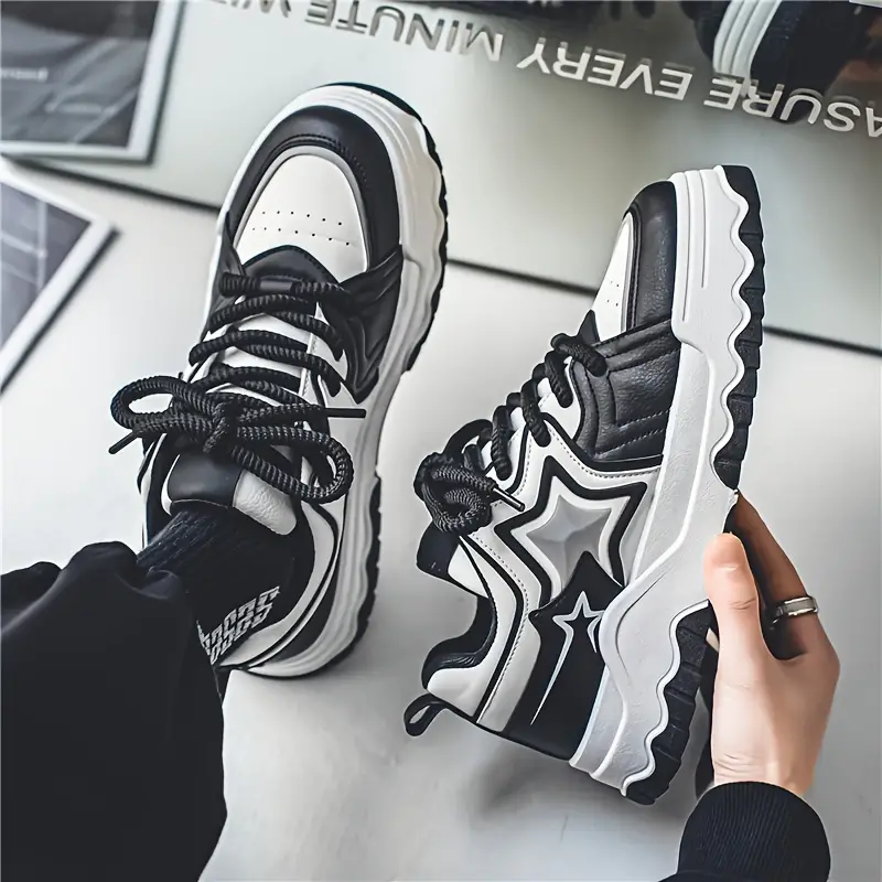 Men's Trendy Solid Street Style Platform Skate Shoes, Comfy Non Slip Lace Up Casual Sneakers For Men's Outdoor Activities, Men's Footwear