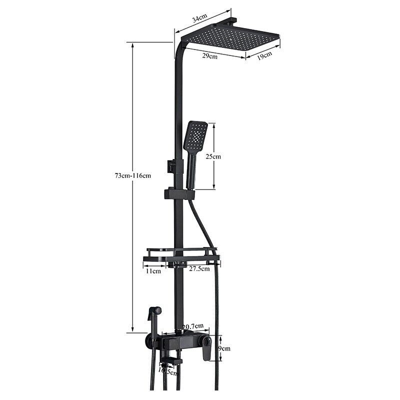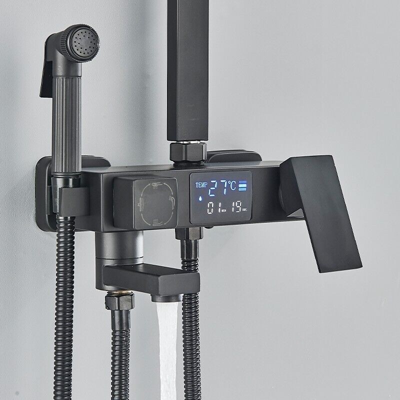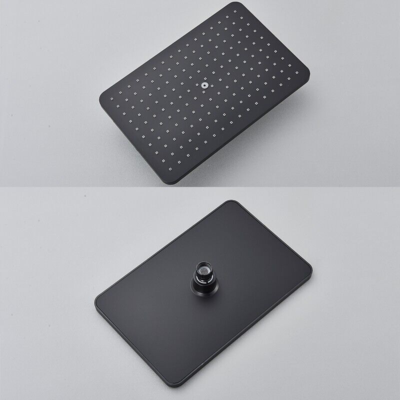 Modern Exposed Black Shower Mixer Twin Head Bar Set Bathroom Square Valve Tap