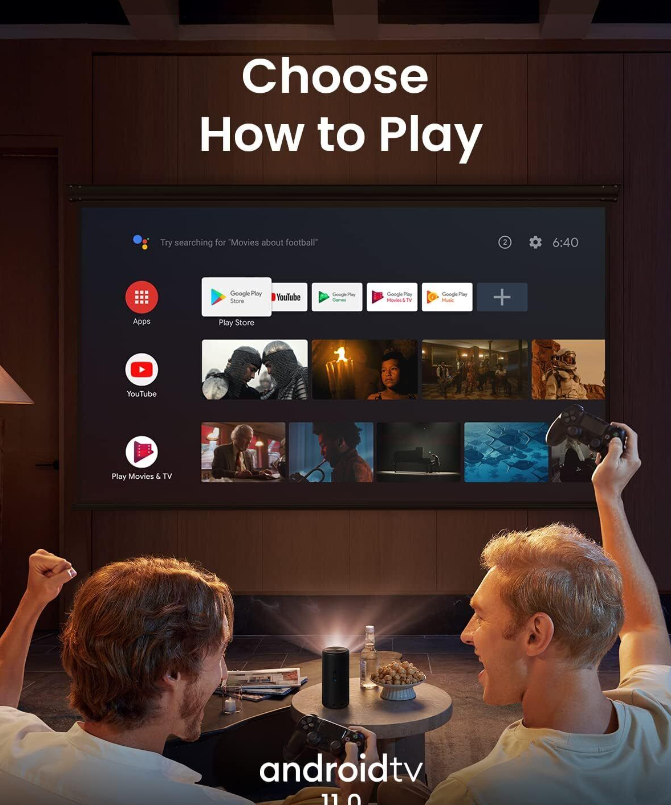 • Switch Up Your Entertainment: Whether you're a cinephile or a gamer, Android TV 11.0 gives you abundant options for fun—no matter the situation. And the portable projector works with the Google Assistant and Chromecast.