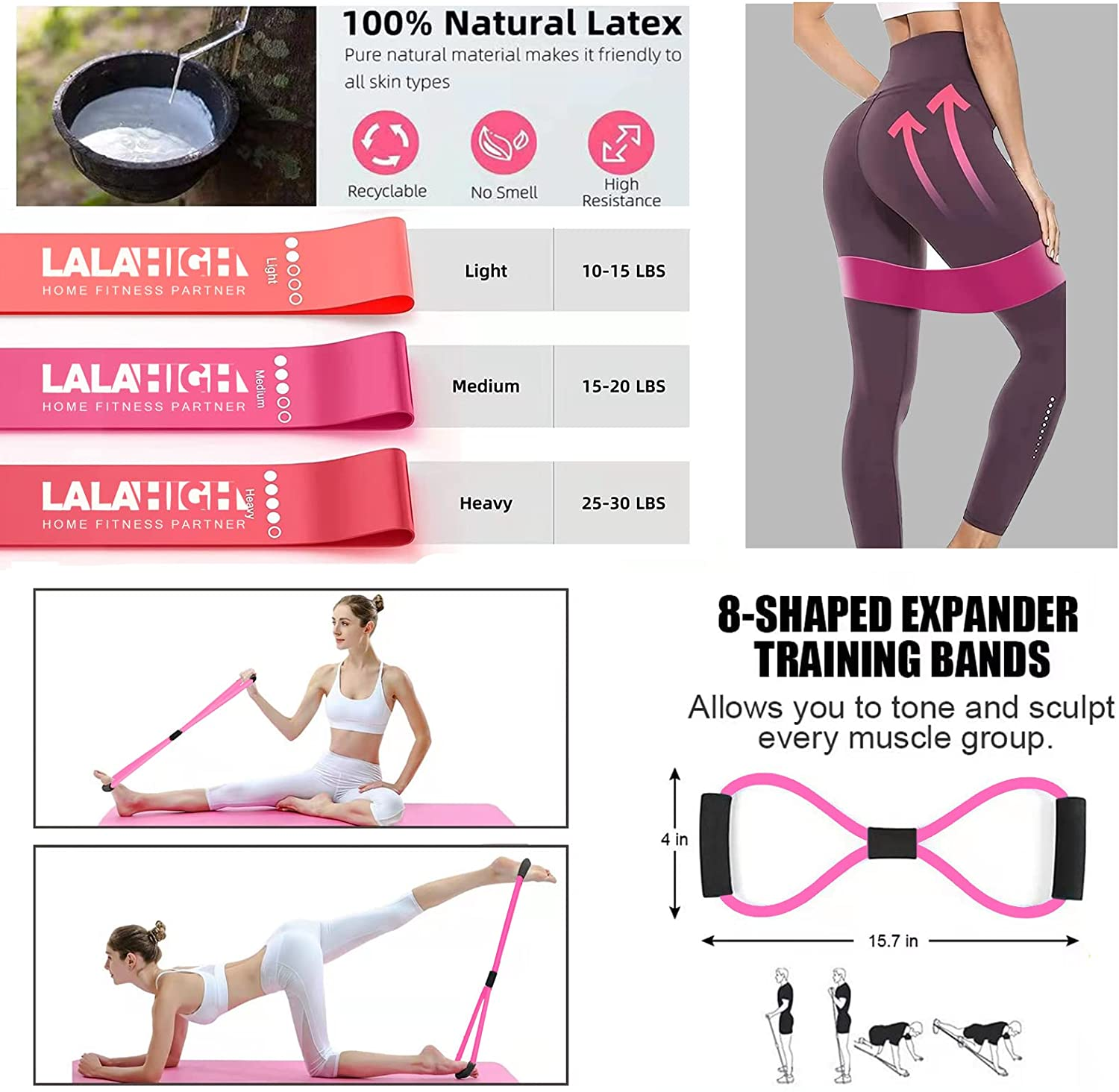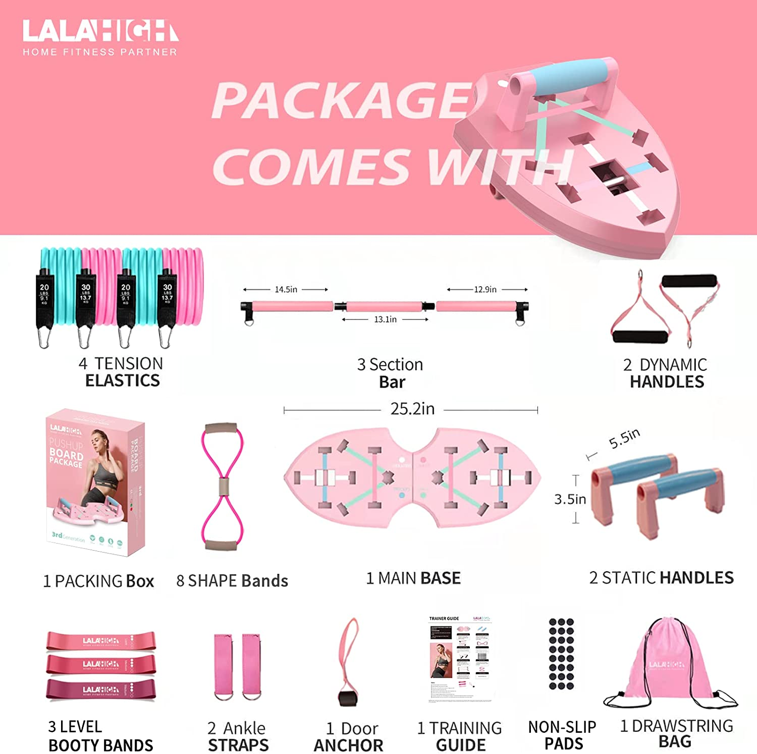 Push up board, pilates bar, booty bands, resistance bands