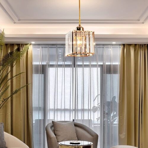 Single Mini Pendant Light Fixture Modern Crystal Gold Kitchen Island Hanging New