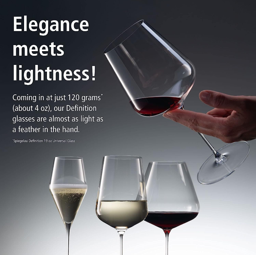 Carefully crafted, painstakingly selected, and perfectly balanced, Spiegelau’s Definition Collection represents the finest in crystal glassware. The lightweight design and impeccable clarity of each glass keeps your focus completely on your wine, giving you the purest experience of your favorite vintages. The Definition Bordeaux Glass Set includes 2 light, perfectly clear stemmed wine glasses with a 26 oz. capacity and extra fine rim.
