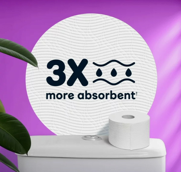 • Super soft, quality 2-ply toilet paper is septic-safe and 3x more absorbent** to keep your hands and bottom protected and clean as you wipe.