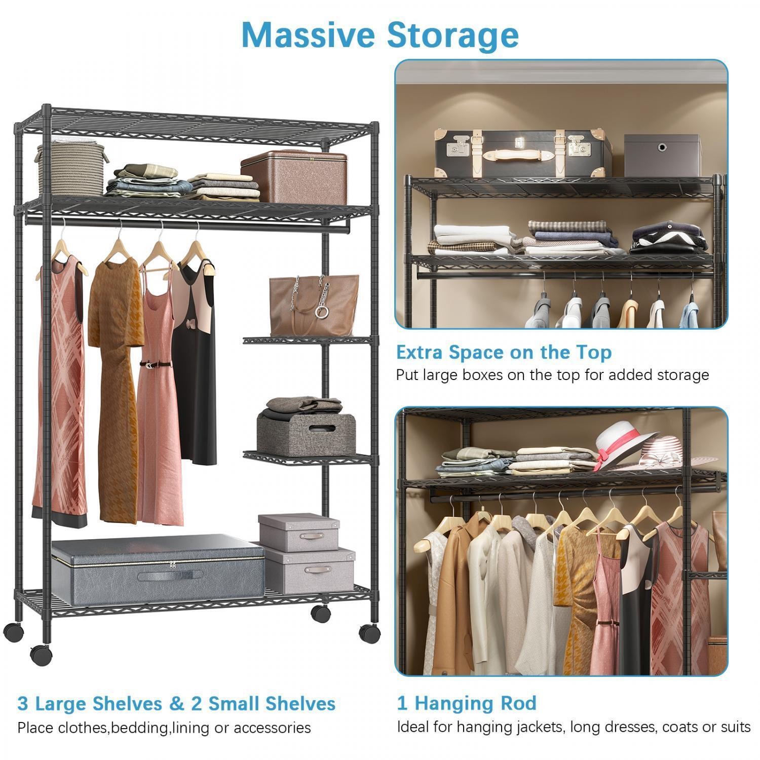 VIPEK Metal Heavy Duty Wire Garment Rack 5 Tier Clothes Rack, Black
