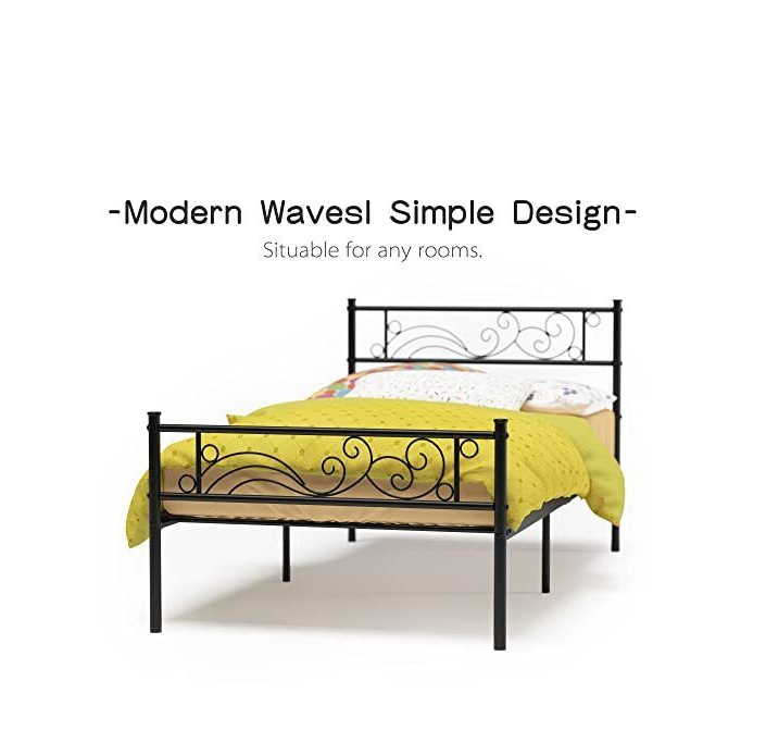 Weehom Metal Twin Bed Platform Frame Heavy Duty Steel Slat Under Bed Storage