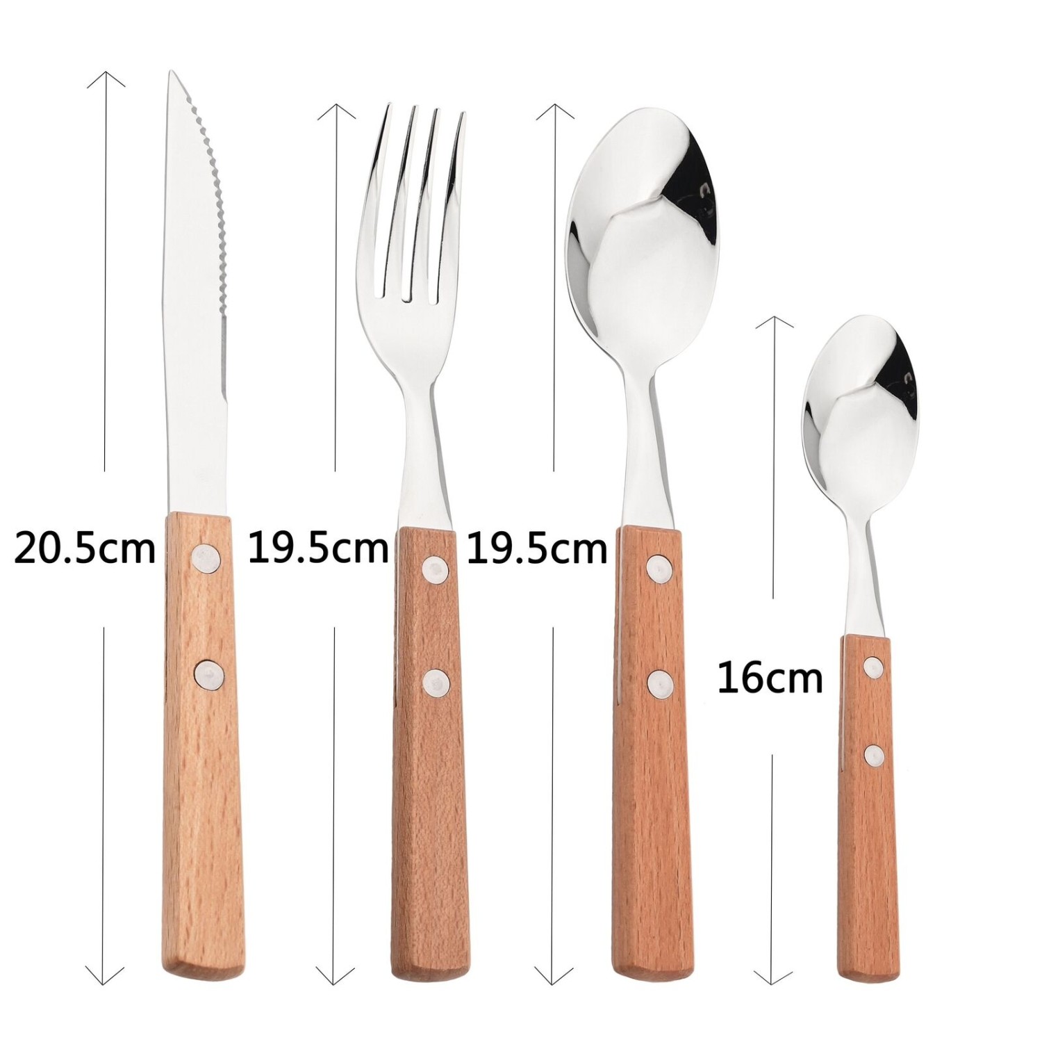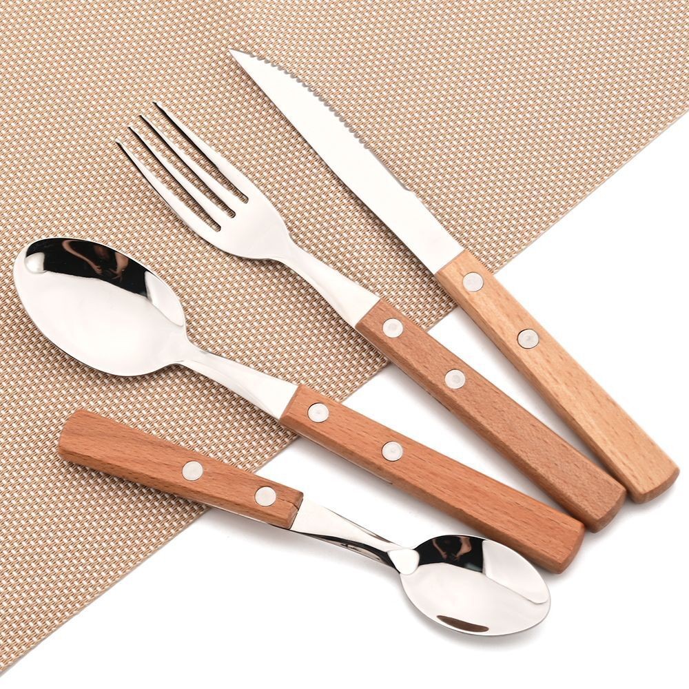 Wooden Handle Cutlery Tableware Stainless Steel Knife Fork Spoon Dinnerware Tool